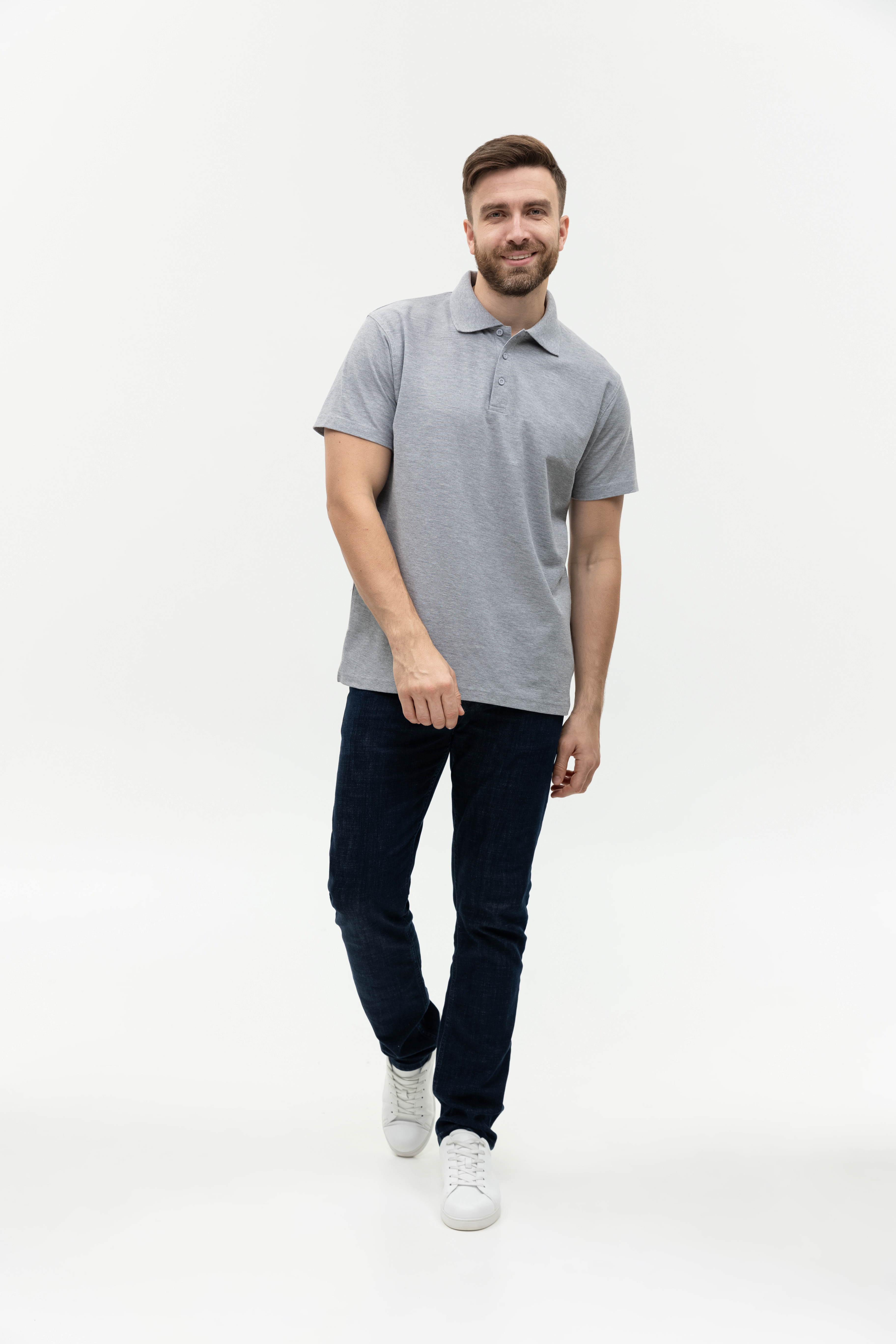 Рубашка поло мужская STAN хлопок/полиэстер 185, 04, Серый меланж, (50/60) (48/M)
