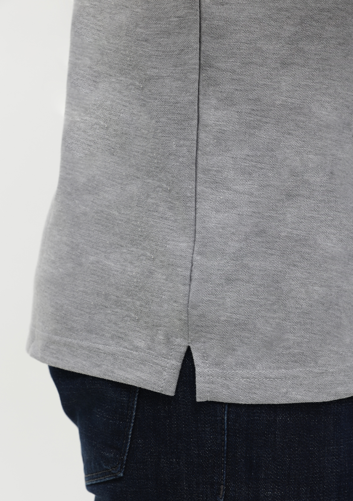 Поло выполнено из фактурной смесового ткани (65% хлопок, 35% полиэстер), благодаря чему изделие хорошо пропускает воздух и практически не мнется.