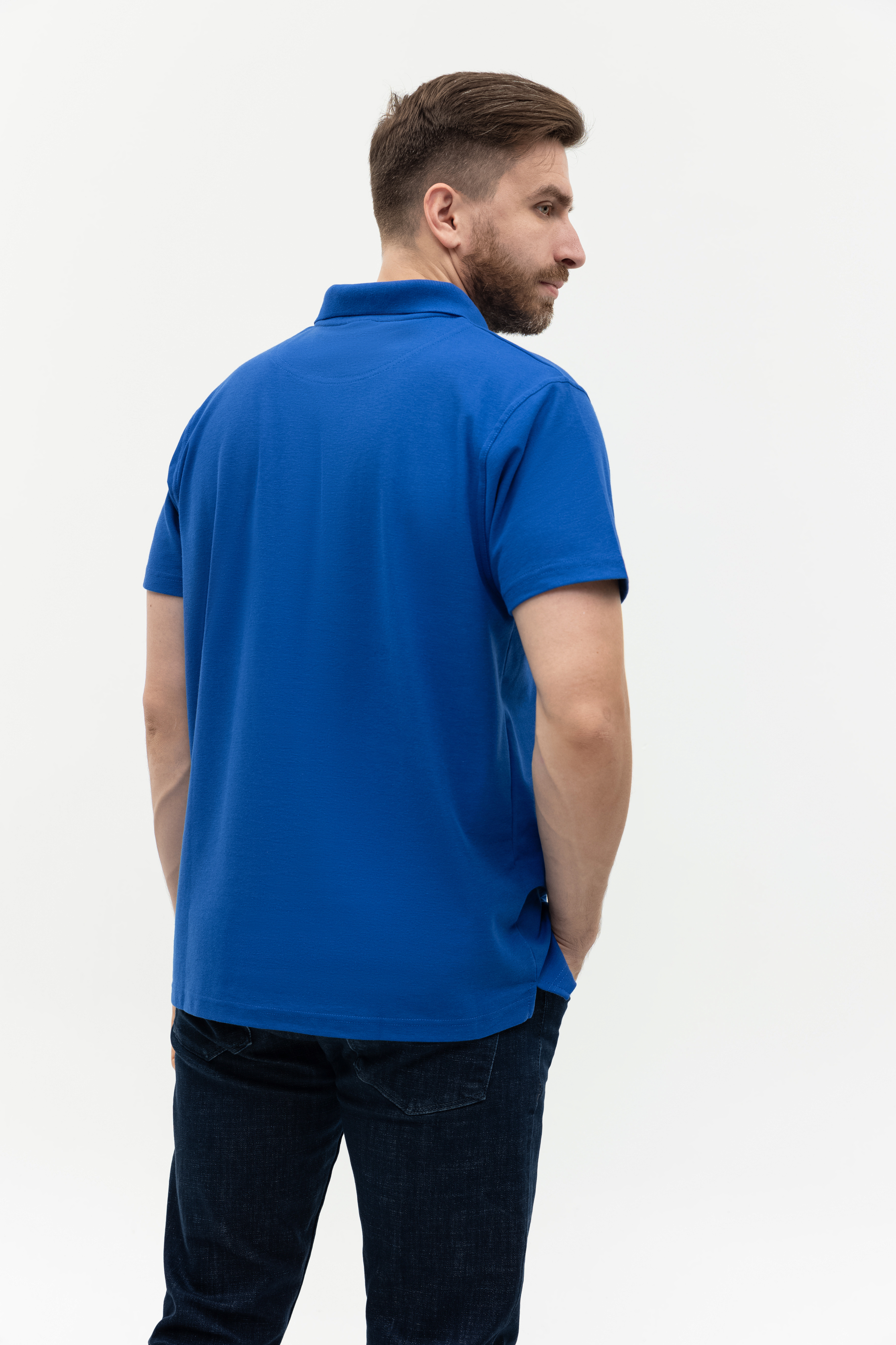 Поло выполнено из фактурной смесового ткани (65% хлопок, 35% полиэстер), благодаря чему изделие хорошо пропускает воздух и практически не мнется.