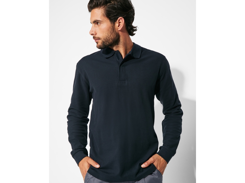Рубашка·поло с длинным рукавом. Воротник и отделка рукавов рибом 1x1. Планка с застежкой на липучке. Усиленные закрытые швы в воротнике. Боковые разрезы внизу.