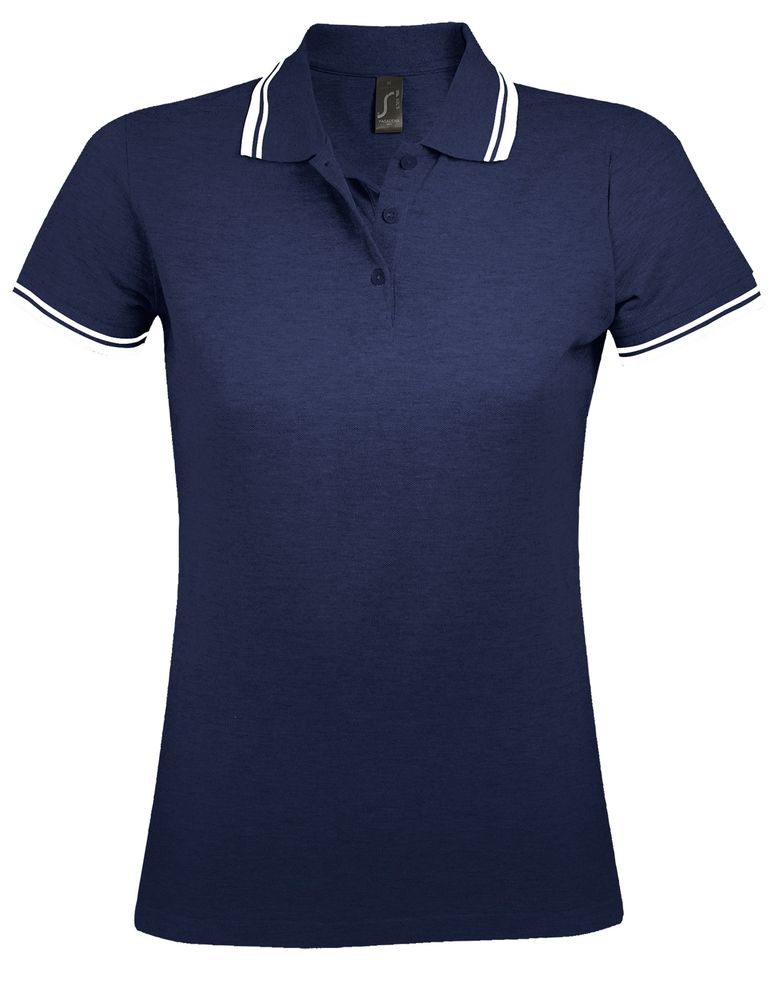 Модель : Рубашка поло женская Pasadena Women 200 с контрастной отделкой, темно-синяя с белым