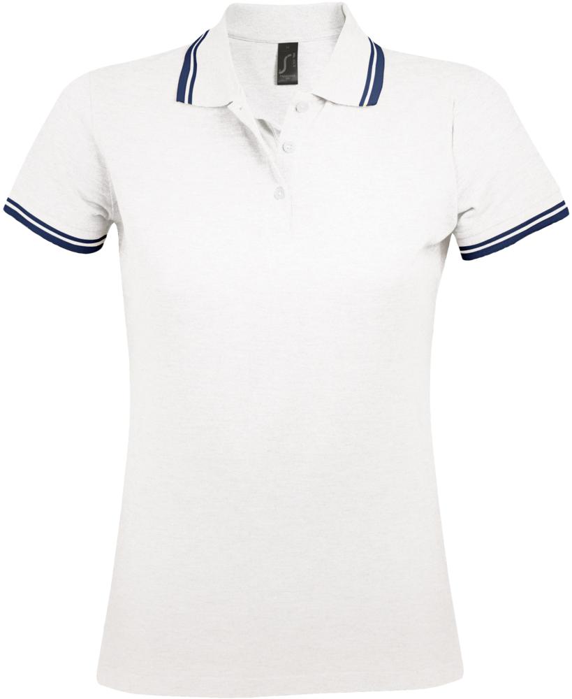Модель : Рубашка поло женская Pasadena Women 200 с контрастной отделкой, белая с синим