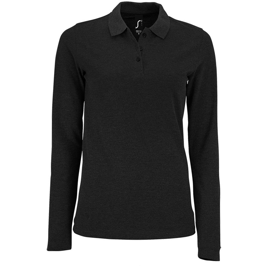 Модель : Рубашка поло женская с длинным рукавом Perfect LSL Women, черный меланж