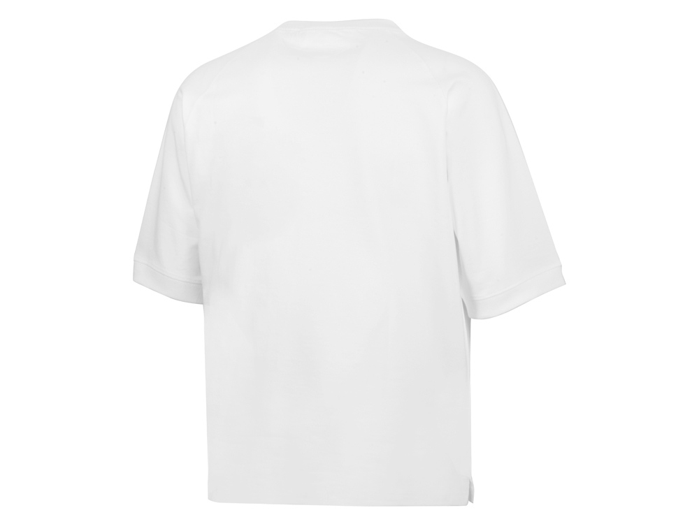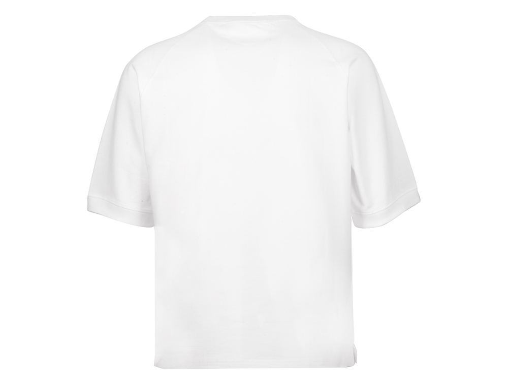Футболка выполнена из хлопкового френч терри с петельками на изнаночной стороне. Горловина обработана рибом 2х2 и дополнительно усилена тесьмой-елочкой с внутренней стороны спинки и дополнена кокеткой по спинке для нанесения логотипа клиента. Рукав реглан продублирован рибом по низу. Разрезы в боковых швах. Гладкая поверхность полотна позволяет идеально нанести изображение. Футболка комфортного силуэта.