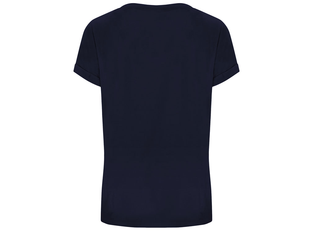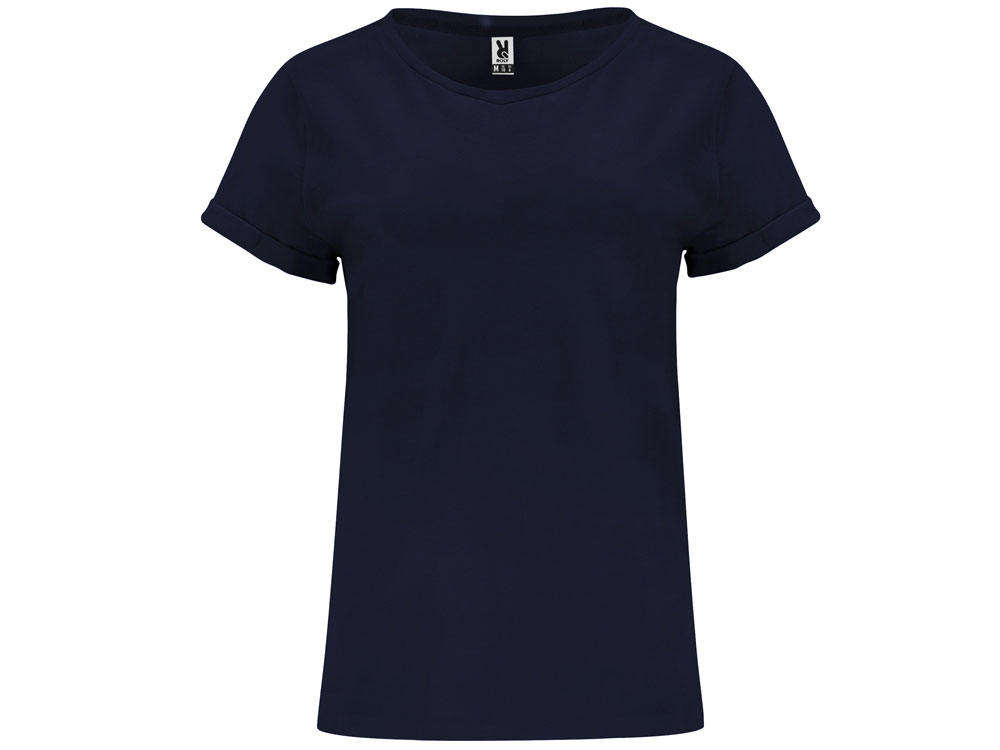 Футболка с коротким рукавом. Круглый вырез горловины отделан основным полотном. На рукавах подвороты закреплены в 4 местах.