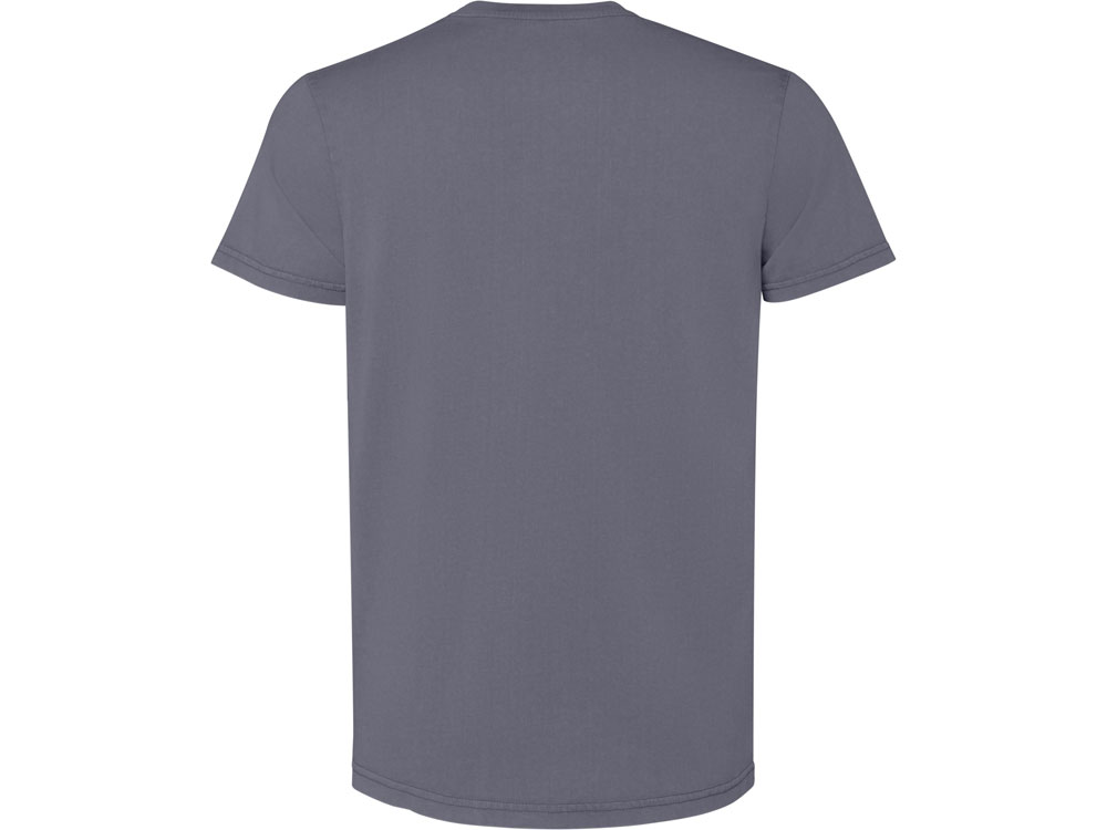 Мужская футболка с коротким рукавом из 100% хлопка с аксидной стиркой. Круглый вырез горловины из риба 1х1. Отстрочка в тон по горловине.