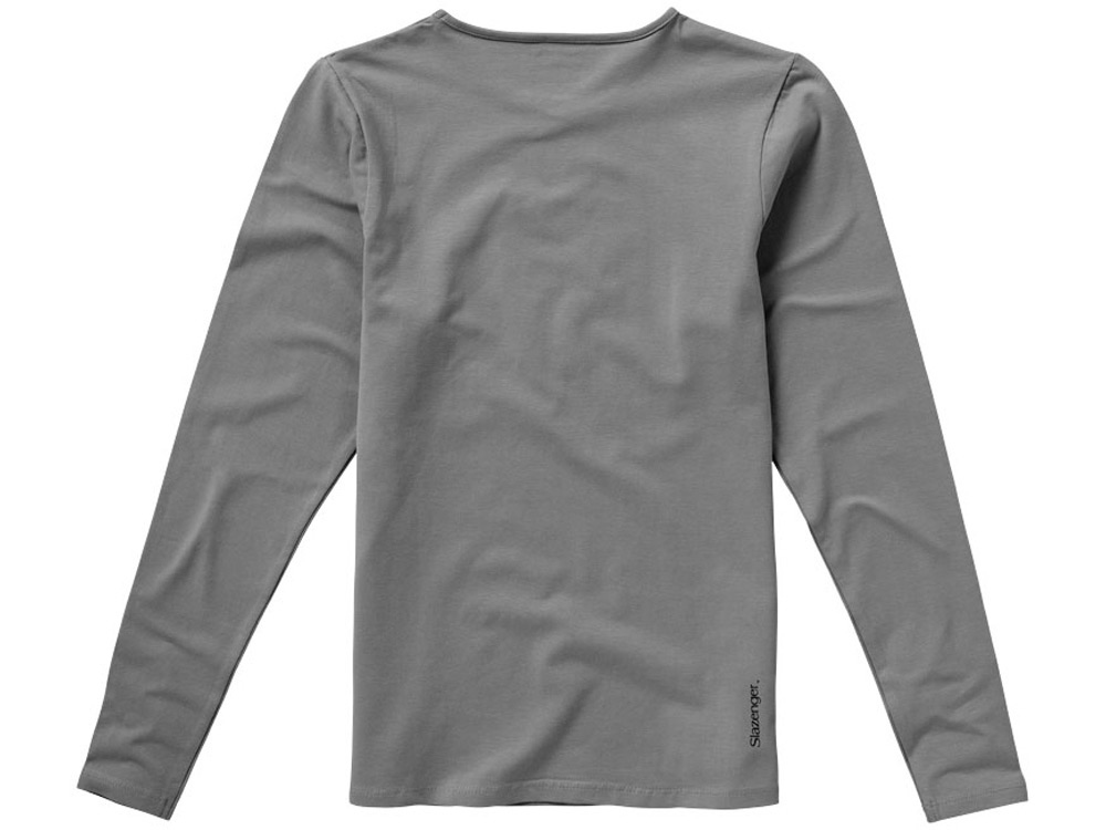 Женская футболка с длинными рукавами Curve. Стандартный покрой. Воротник из ткани изделия. Принт Slazenger на шве слева. Однослойная джерси гладкого переплетения, 95% хлопок и 5% эластан. 200 г/м². Трафаретная печать (1 цвет (цветные изделия)) на данный товар осуществляется бесплатно. Оплачивается только настройка оборудования в размере 8200 рублей на весь тираж.