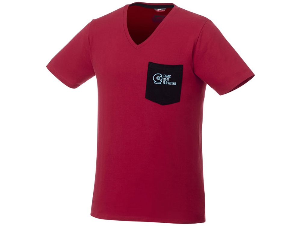 Мужская футболка Gully с коротким рукавом и кармашком. Без боковых швов.V-образная горловина. Нагрудный карман. Лента от плеча к плечу. Двойная строчка на воротнике и внизу изделия. Петелька-вешалка контрастного цвета. Комфортный ярлык-трансфер на изделии. Однослойная джерси, 100% хлопок. 150 г/м². Трафаретная печать (1 цвет (цветные изделия)) на данный товар осуществляется бесплатно. Оплачивается только настройка оборудования в размере 8200 рублей на весь тираж.