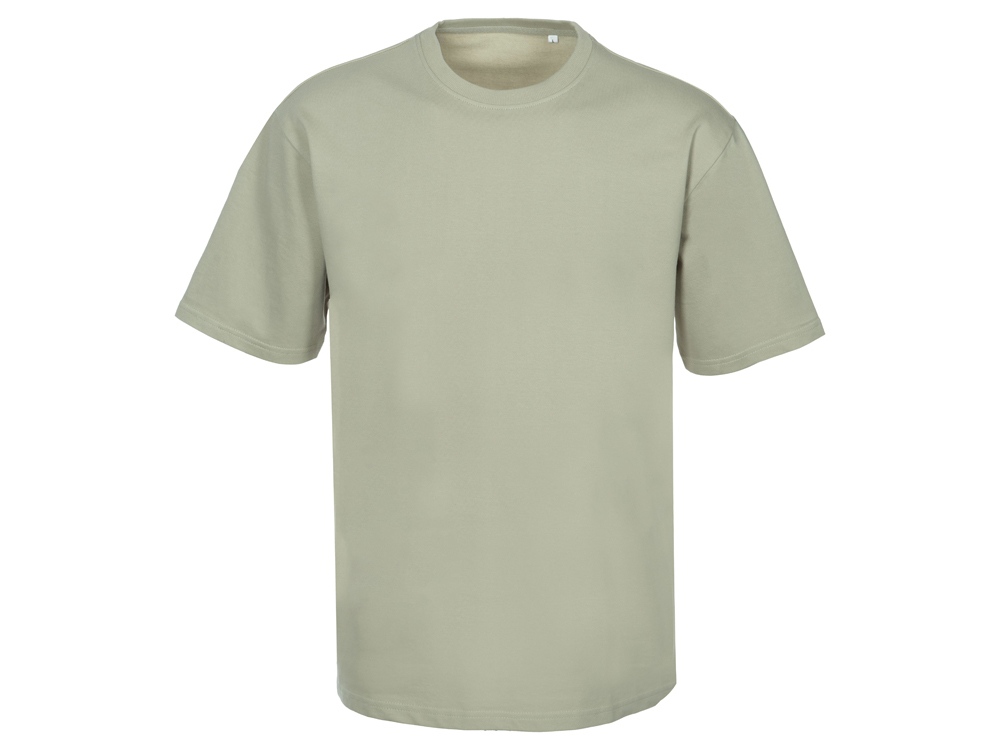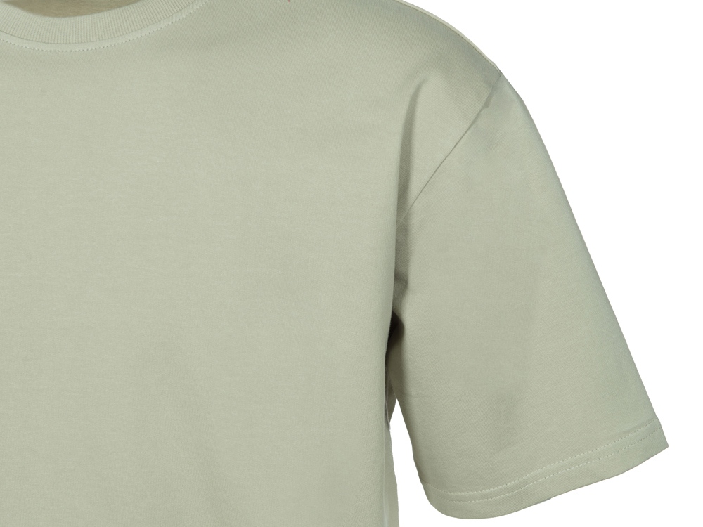 Футболка выполнена из хлопкового френч терри с петельками на изнаночной стороне. Горловина обработана рибом 2х2 и дополнительно усилена тесьмой-елочкой с внутренней стороны спинки. Гладкая поверхность полотна позволяет идеально нанести изображение. Футболка расслабленного силуэта для прогулок и других видов приятного времяпрепровождения