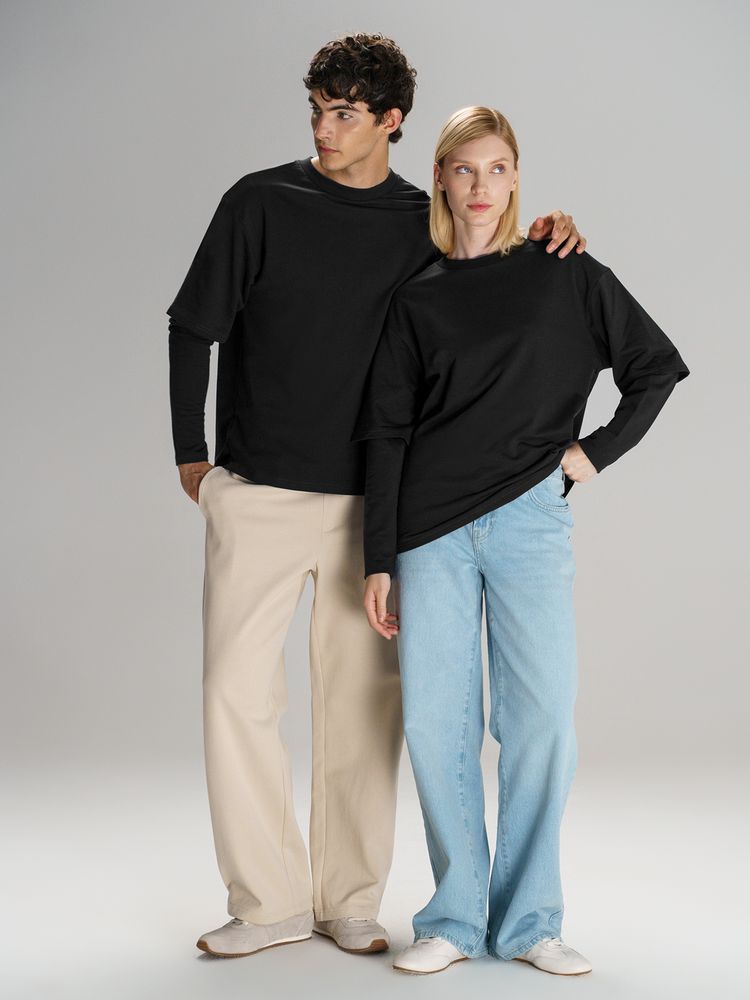 Модель : Футболка оверсайз с двойным рукавом Kosmos, черная