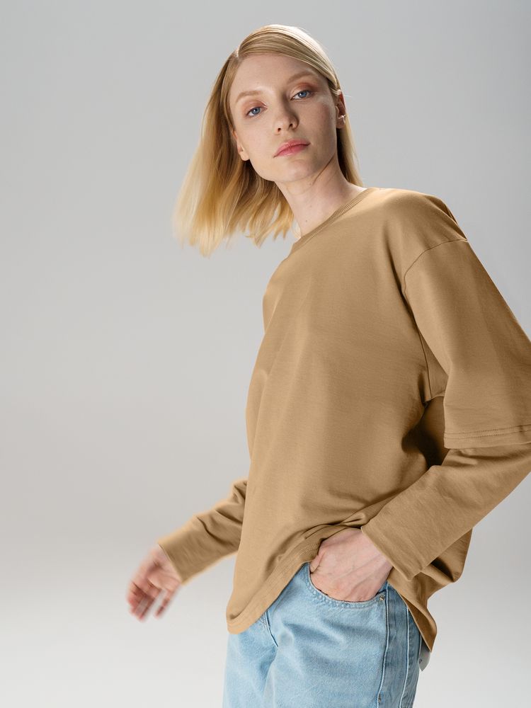 Модель : Футболка оверсайз с двойным рукавом Kosmos, бежевая