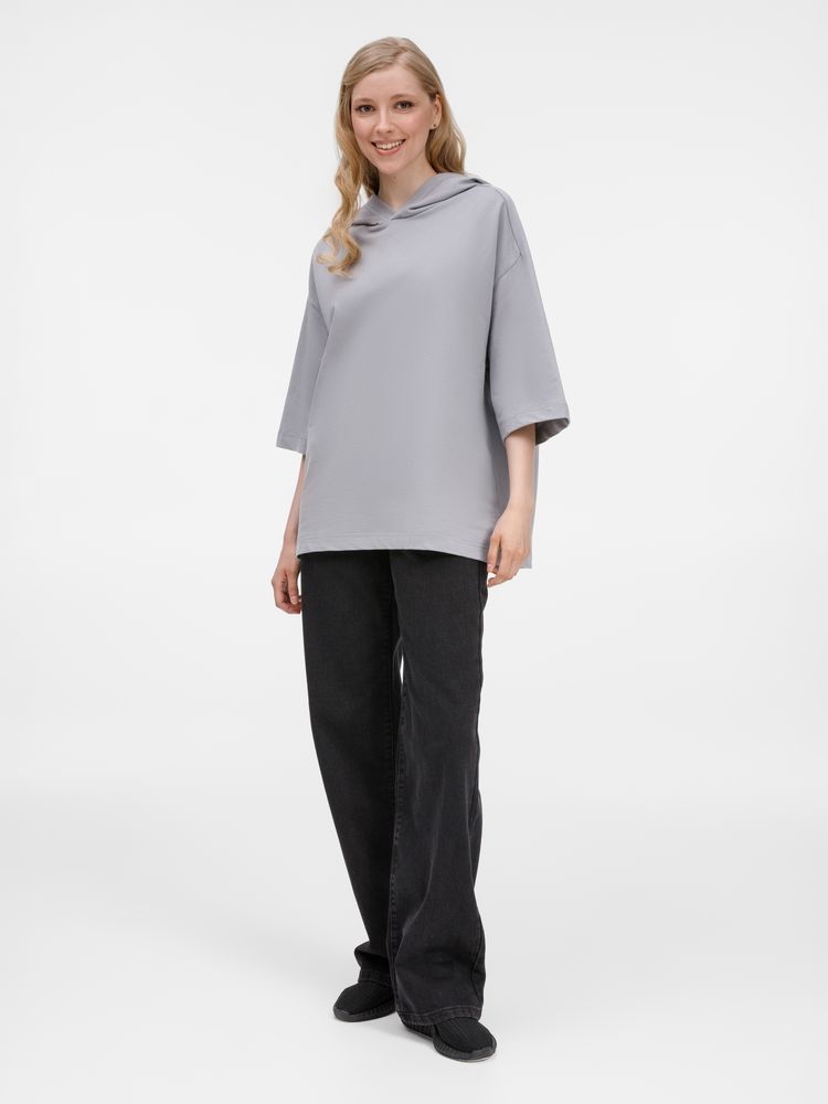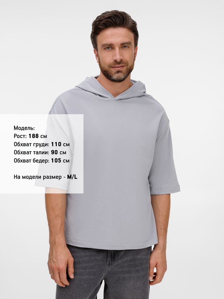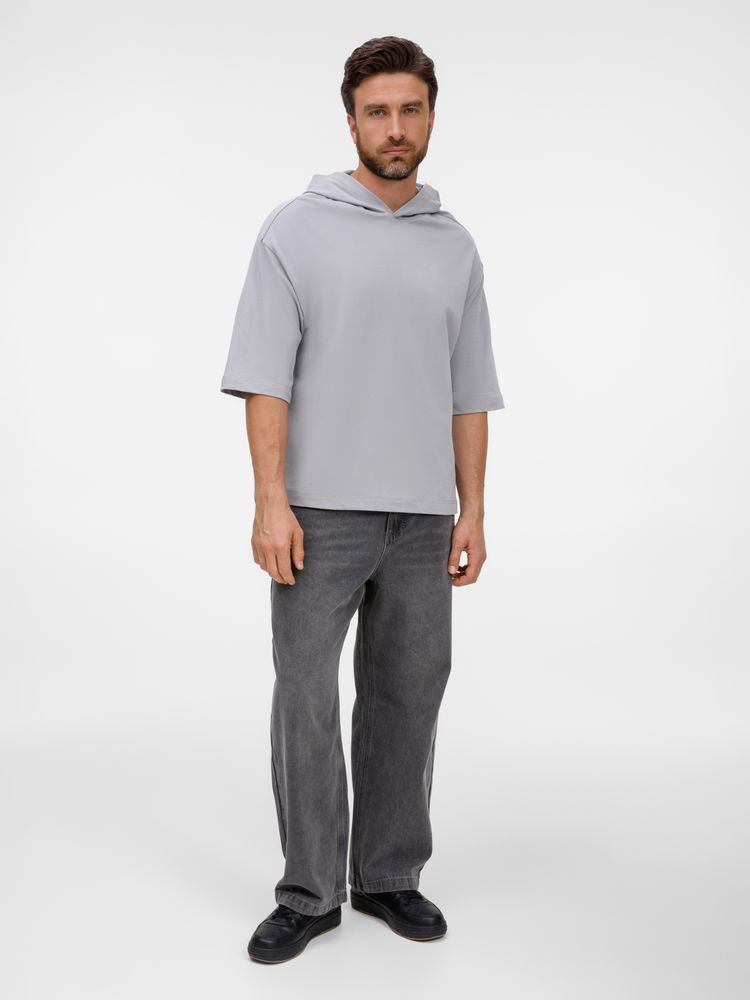 Модель : Футболка оверсайз унисекс с капюшоном Neofit, светло-серая