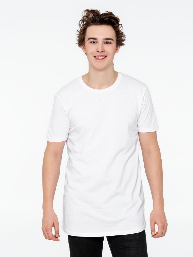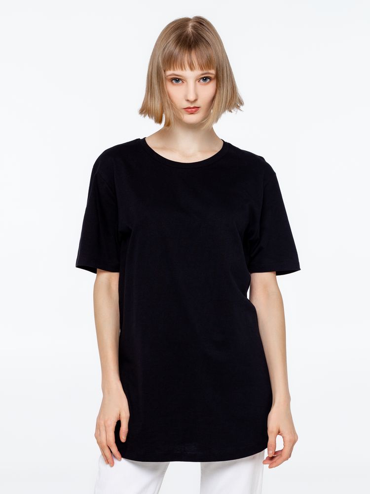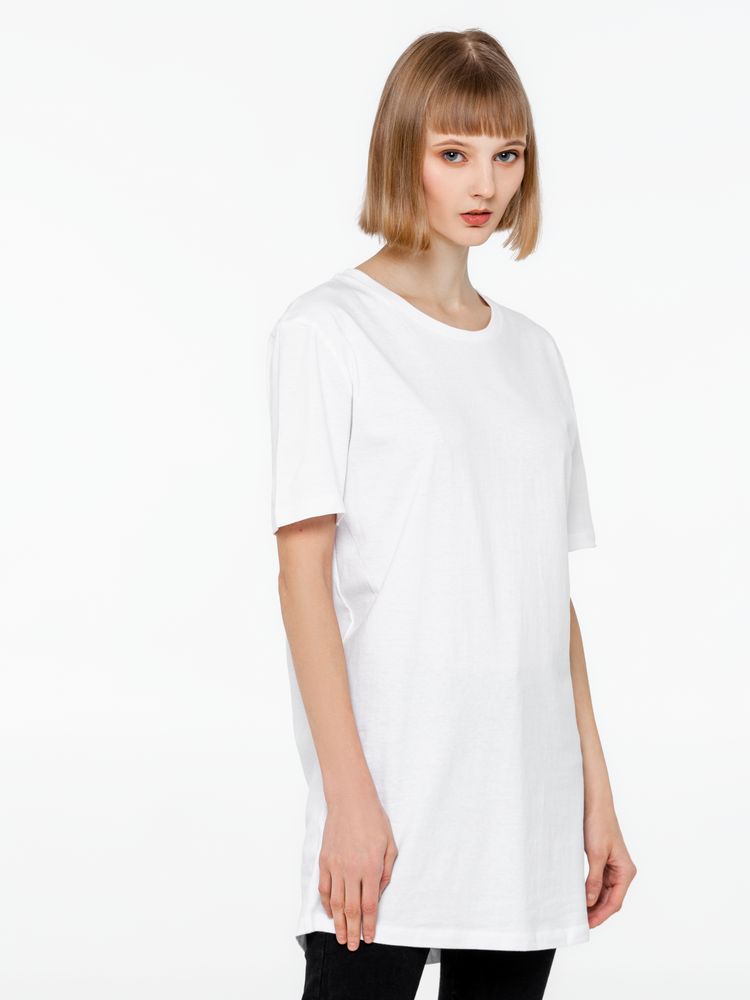 Удлиненная футболка из джерси c боковыми швами и круглым вырезом.