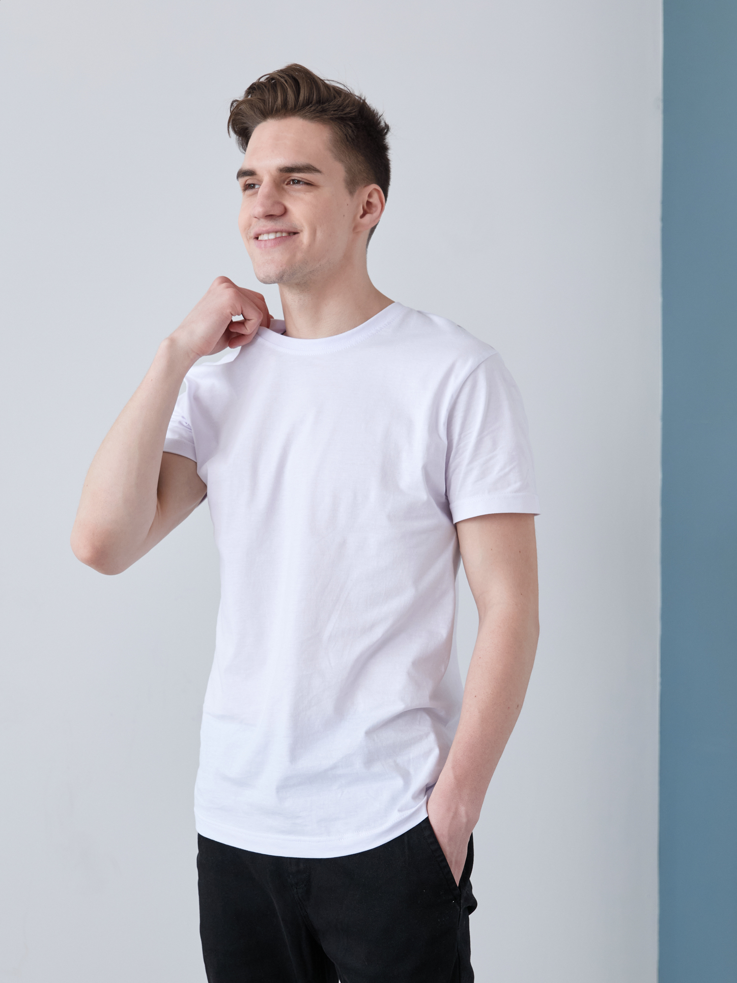 Классическая футболка прямого кроя с округлым воротом и втачным рукавом. Изделие не имеет бокового шва, что открывает новые возможности для реализации ваших креативных решений.