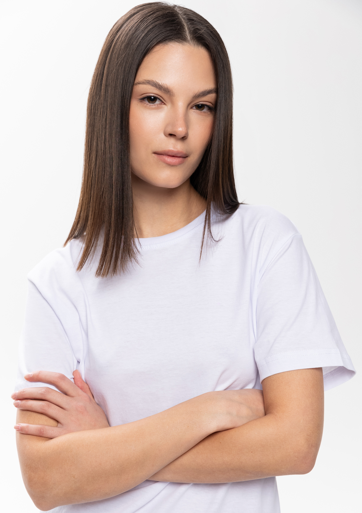 Классическая футболка прямого кроя с округлым воротом и втачным рукавом. Изделие не имеет бокового шва, что открывает новые возможности для реализации ваших креативных решений.