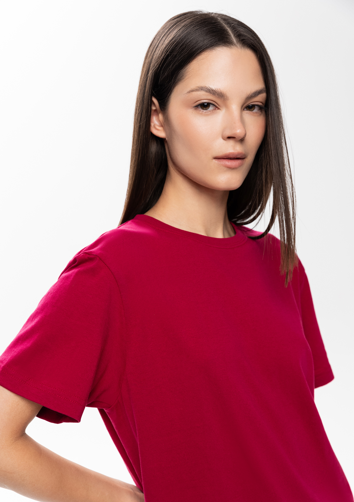 Классическая футболка прямого кроя с округлым воротом и втачным рукавом. Изделие не имеет бокового шва, что открывает новые возможности для реализации ваших креативных решений.