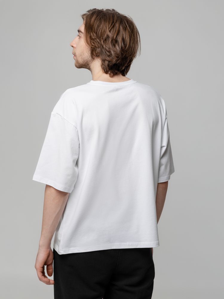 Футболка унисекс свободного кроя с боковыми швами. Благодаря тонким и длинным волокнам хлопка ткань футболки отличается гладкостью, ровностью и прочностью, отлично сохраняет форму, не деформируется и не выцветает при стирке.