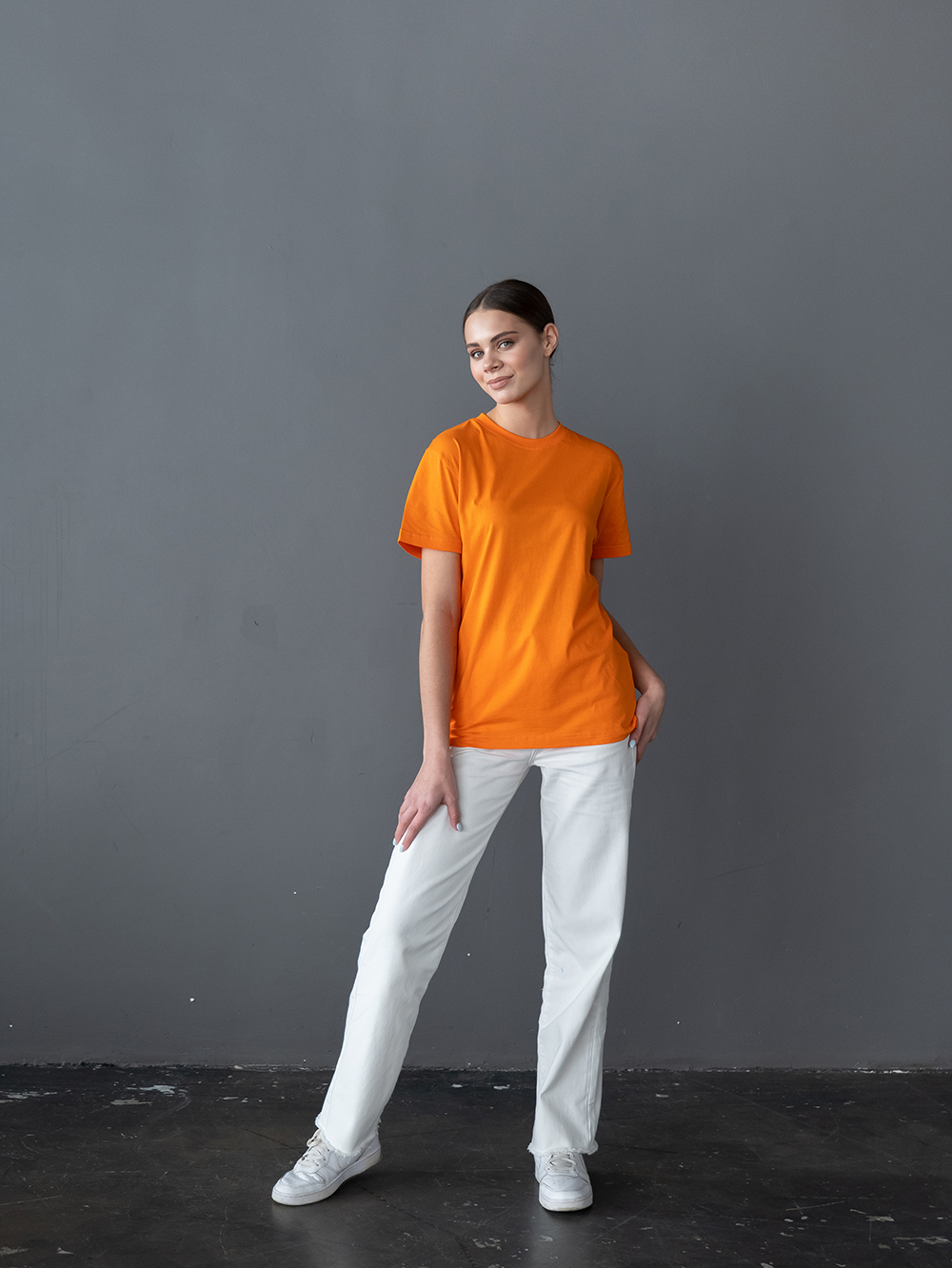 Футболка выполнена из мягкого и прочного полотна из 100% хлопка. Материал обладает отличными влагоотводящими и воздухопроницаемыми свойствами. Ткань легкая и приятная к телу.