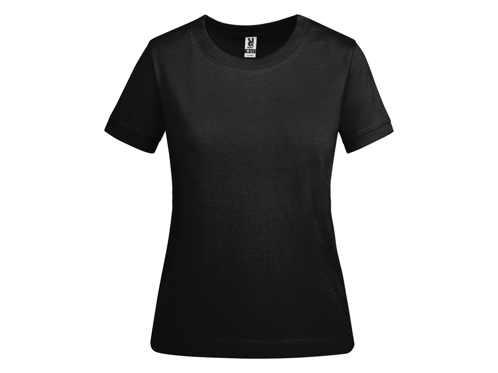Женская футболка с коротким рукавом из плотного хлопка. Широкая горловина в рубчик 2x1 и окантовка краев рукавов. Усиленные закрытые швы по горловине. Боковые швы. Наличие логотипа Roly на левой стороне низа и широкая отстрочка.