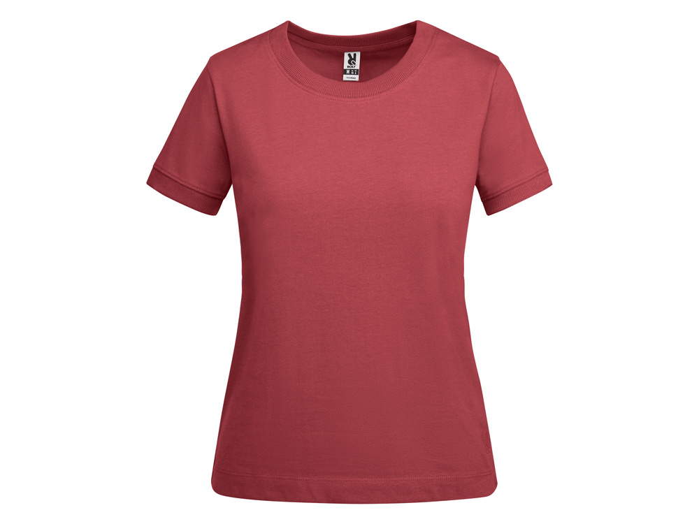 Женская футболка с коротким рукавом из плотного хлопка. Широкая горловина в рубчик 2x1 и окантовка краев рукавов. Усиленные закрытые швы по горловине. Боковые швы. Наличие логотипа Roly на левой стороне низа и широкая отстрочка.