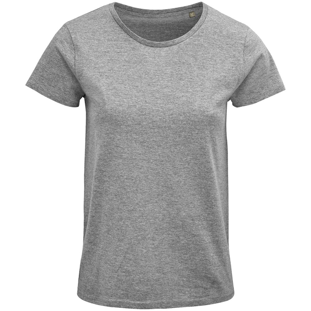 Женская бесшовная облегающая футболка из органического хлопка с круглым вырезом.