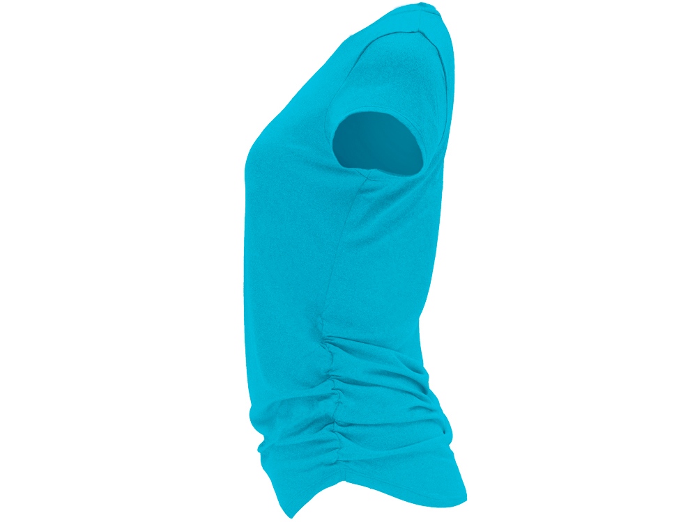Спортивная футболка с коротким рукавом для женщин. Полотно из полиэстера на ощупь напоминающее хлопок. Круглый вырез горловины обработан бейкой из того же полотна. Эластичная драпировка по боковым швам для лучшей посадки по фигуре. Узкий силуэт.