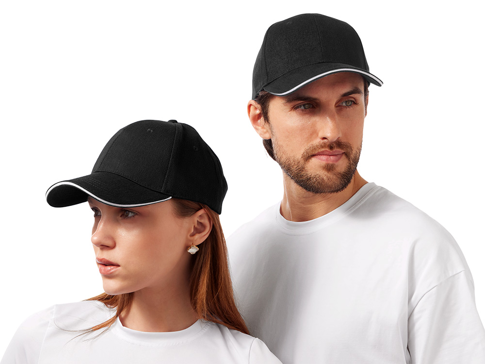 Контрастный кант по козырьку и заднему хлястику.