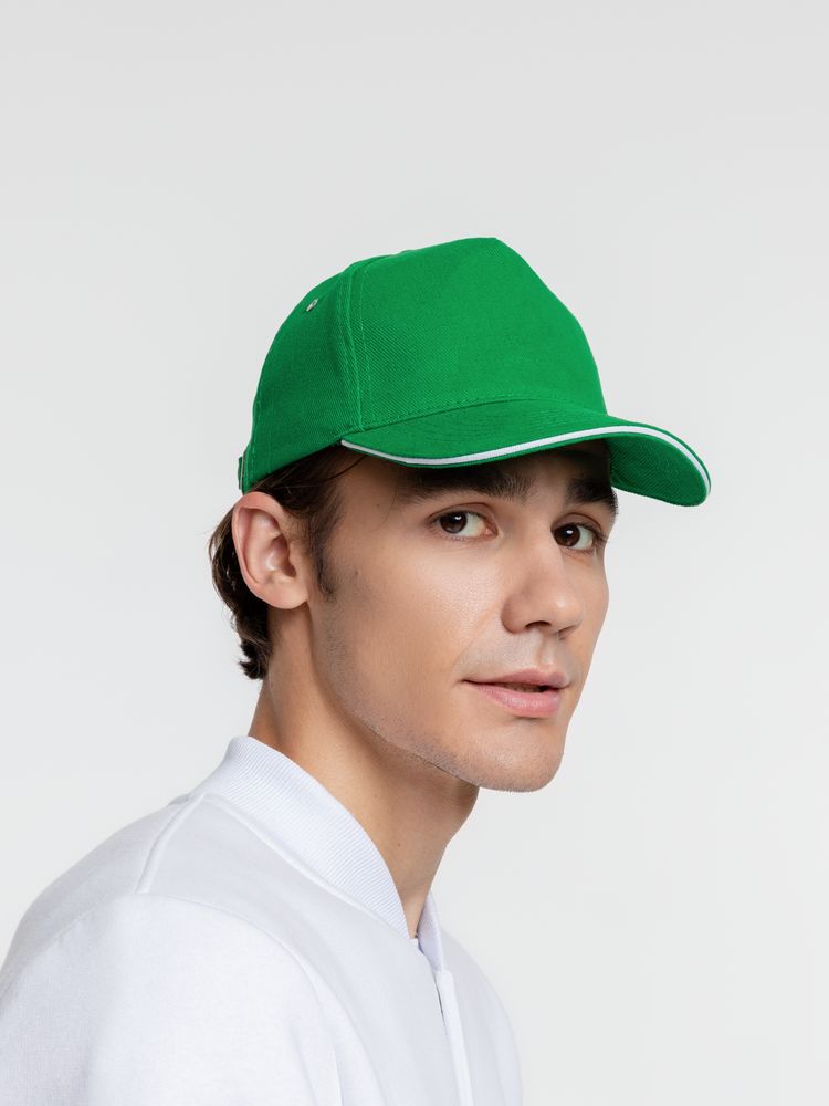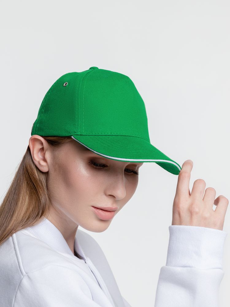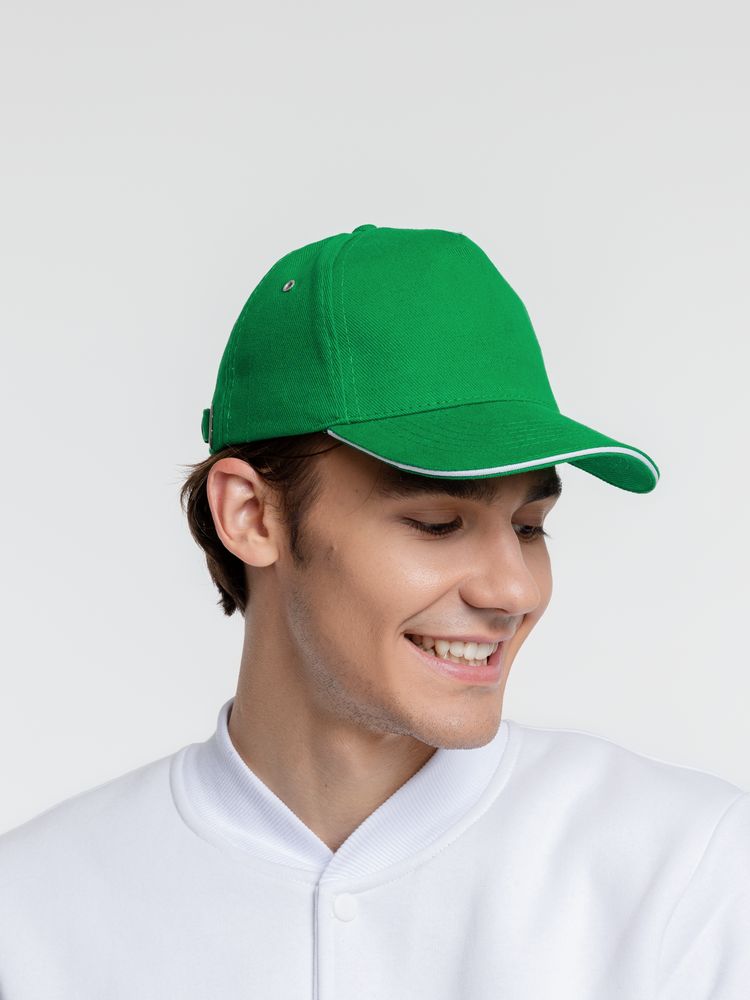 Модель : Бейсболка Classic, ярко-зеленая с белым кантом