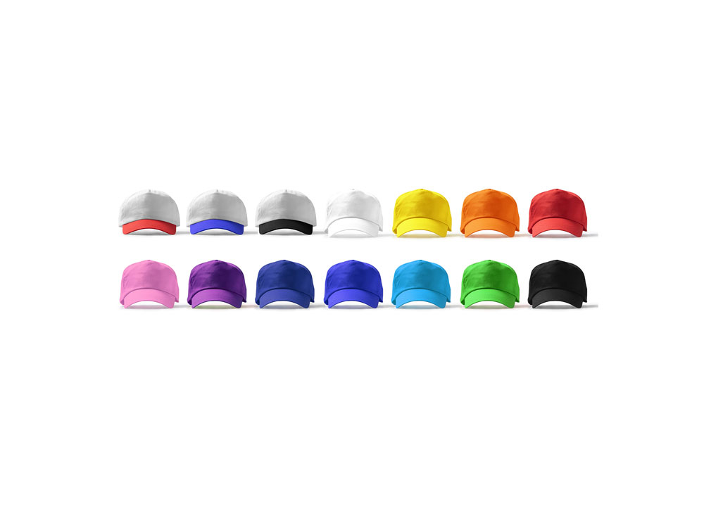 Кепка из 100% хлопка с пятью панелями. Регулируемая застежка-липучка и вентиляционные отверстия.