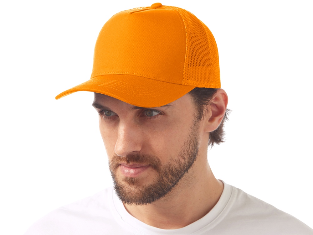 Пяти панельная бейсболка с передней частью из хлопка для комфорта головы и лба. Задняя часть из пластиковой сетки, которая отвечает за циркуляцию воздуха и обеспечивает изделию износостойкость. Для подгонки по размеру головы — пластиковая застежка.