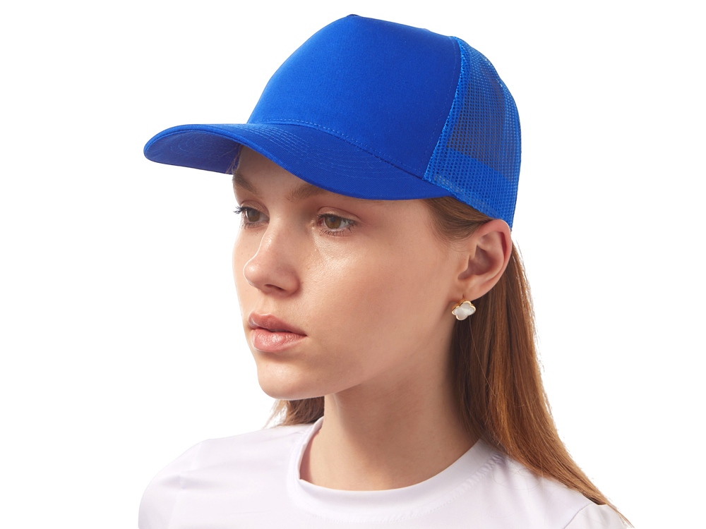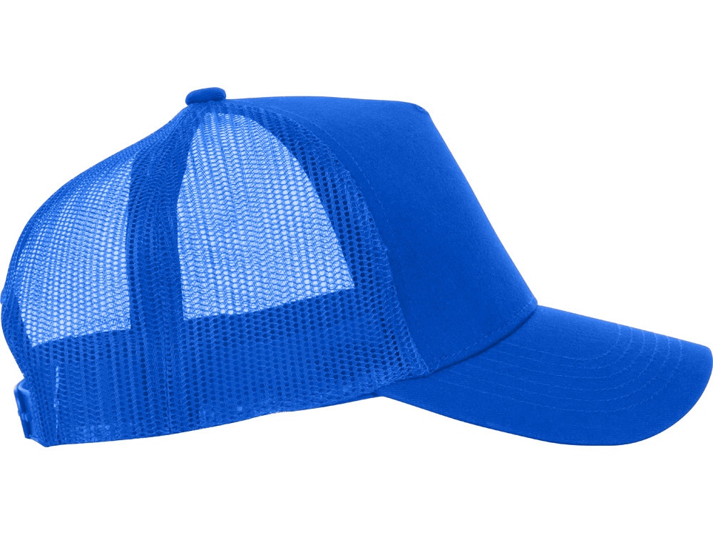 Пяти панельная бейсболка с передней частью из хлопка для комфорта головы и лба. Задняя часть из пластиковой сетки, которая отвечает за циркуляцию воздуха и обеспечивает изделию износостойкость. Для подгонки по размеру головы — пластиковая застежка.