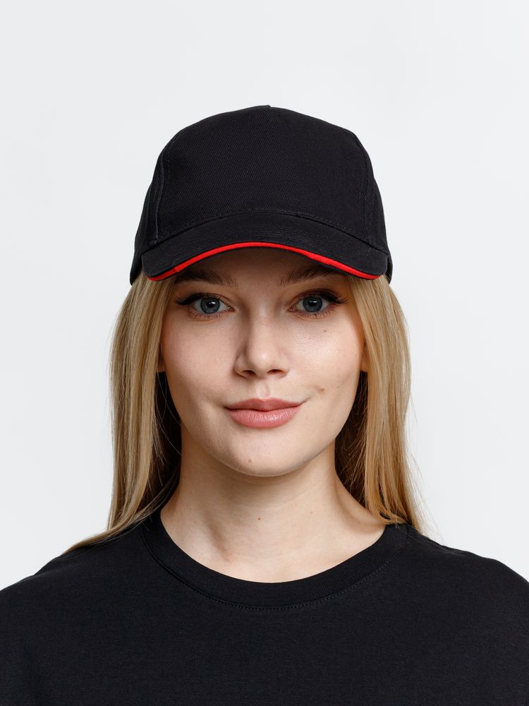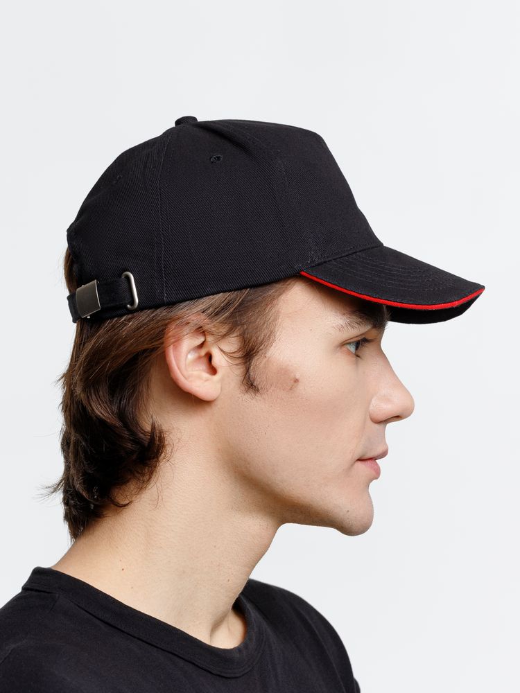 Модель бейсболки с 5-ю клиньями без лобового шва из плотного чесаного хлопка.
