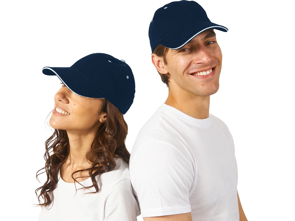 Стильная 6-панельная промо-бейсболка с контрастными деталями. Отличный выбор для яркого и запоминающегося брендинга.