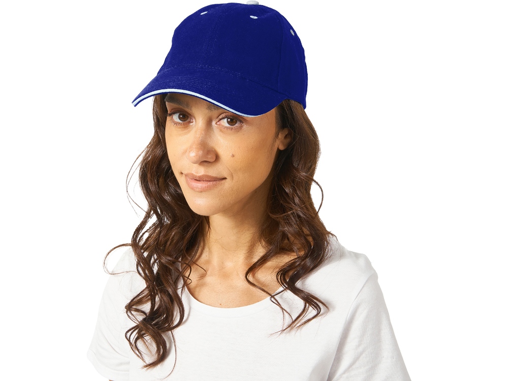 Стильная 6-панельная промо-бейсболка с контрастными деталями. Отличный выбор для яркого и запоминающегося брендинга.