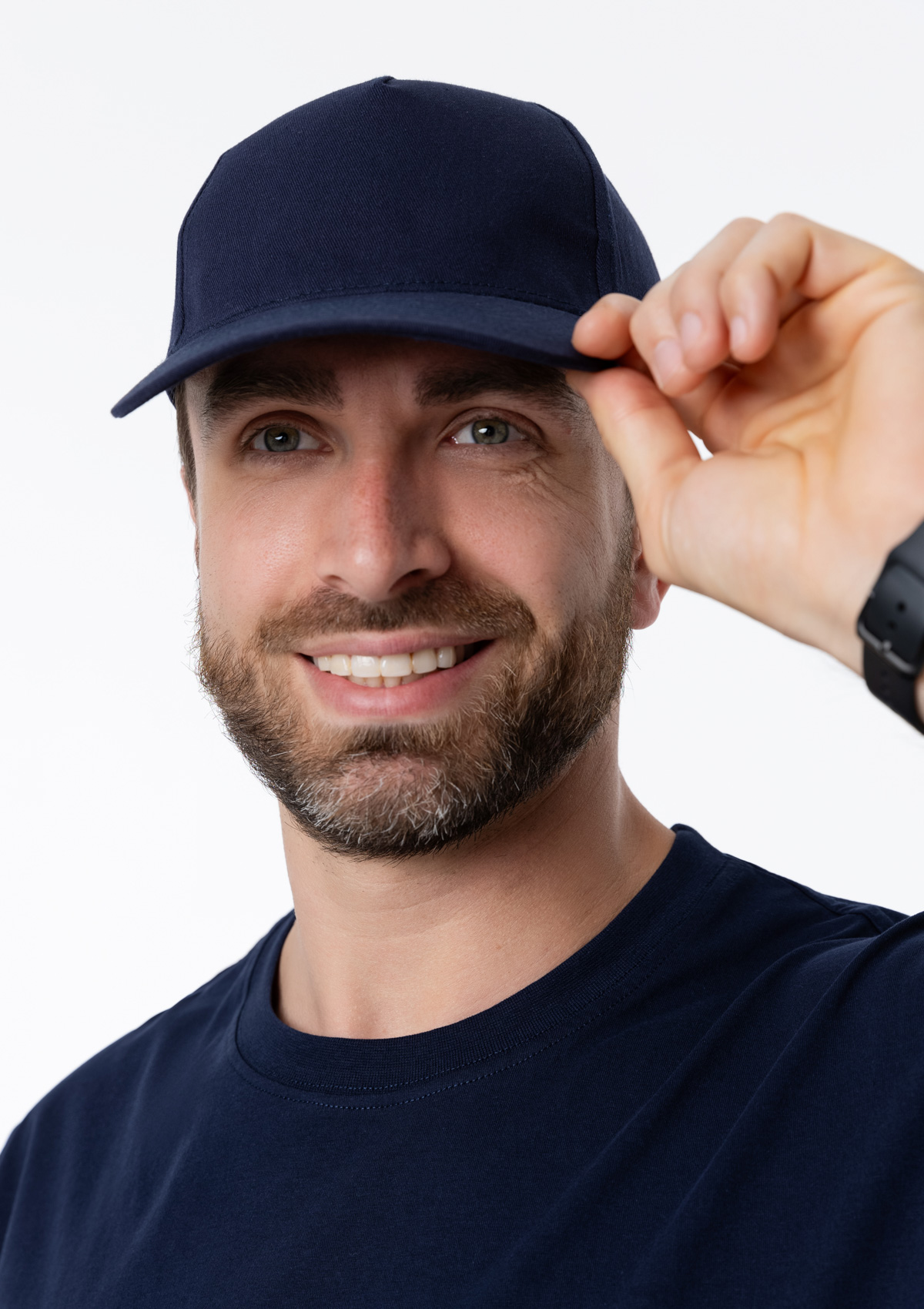Классическая модель с жестким изогнутым козырьком, прилегание регулируется ремешком застежкой на ленту «велкро».