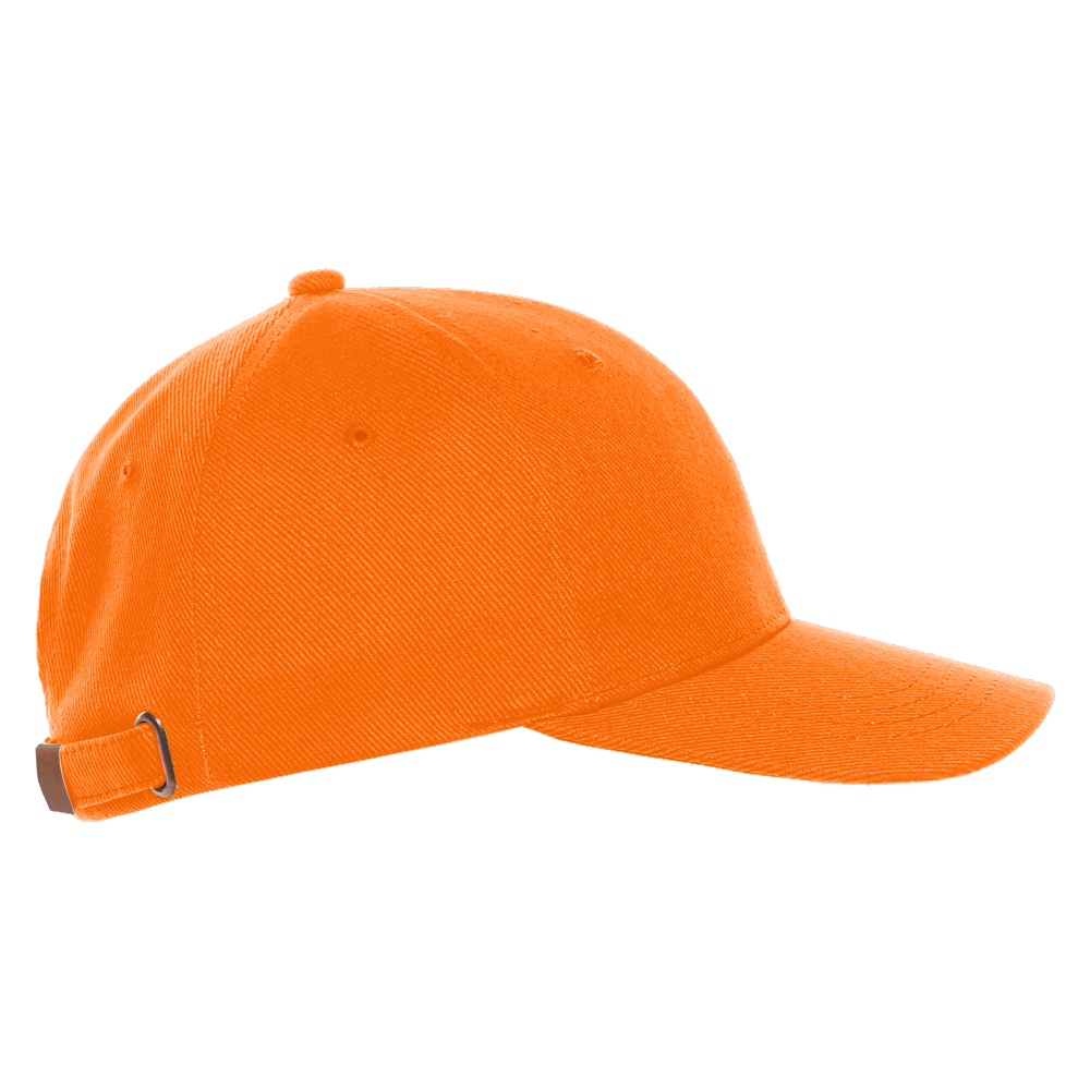 Бейсболка-пятиклинка без лобового шва с изогнутым жестким козырьком и регулируемой металлической застежкой.