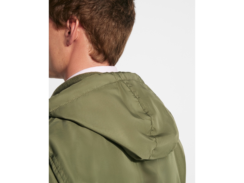 · Высокий воротник и складывающимся капюшоном с регуляторами.