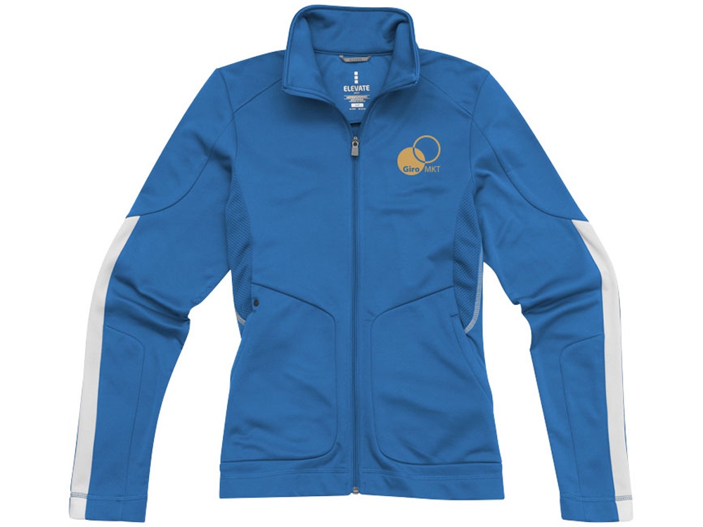 Женская куртка Maple. Универсальный покрой. Карманы для рук на молнии. Внутренняя планка. Декоративные контрастные швы спереди и сзади. Внутреннее отверстие для медиапроводов. Стропы контрастного цвета на рукавах. Джерси гладкого переплетения, 100% полиэстер с чесаной спинкой. 195 г/м².