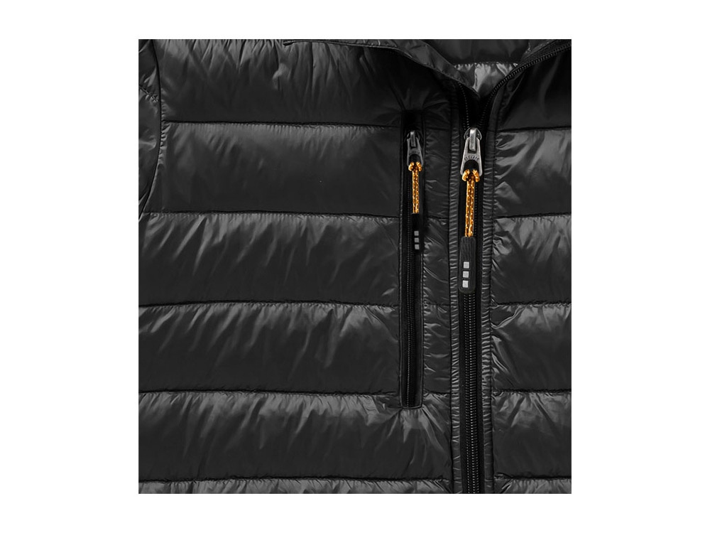 Легкая куртка- пуховик Scotia. Ткань не пропускает пух. Карманы для рук и нагрудный на молнии. Карман на рукаве на молнии можно использовать для нанесения. Резинка на манжетах и внизу куртки. Ремешки на собачку (второй комплект в цвете антрацит).Внутренний противоветровой клапан и защита подбородка. Ткань дышащая, ветронепроницаемая и влагоотталкивающая. Легкий пуховик. Ткань из 100% нейлона с матовым и блестящим водоотталкивающим покрытием, 20D. 90% пух и 10% перо. 115 г/м².