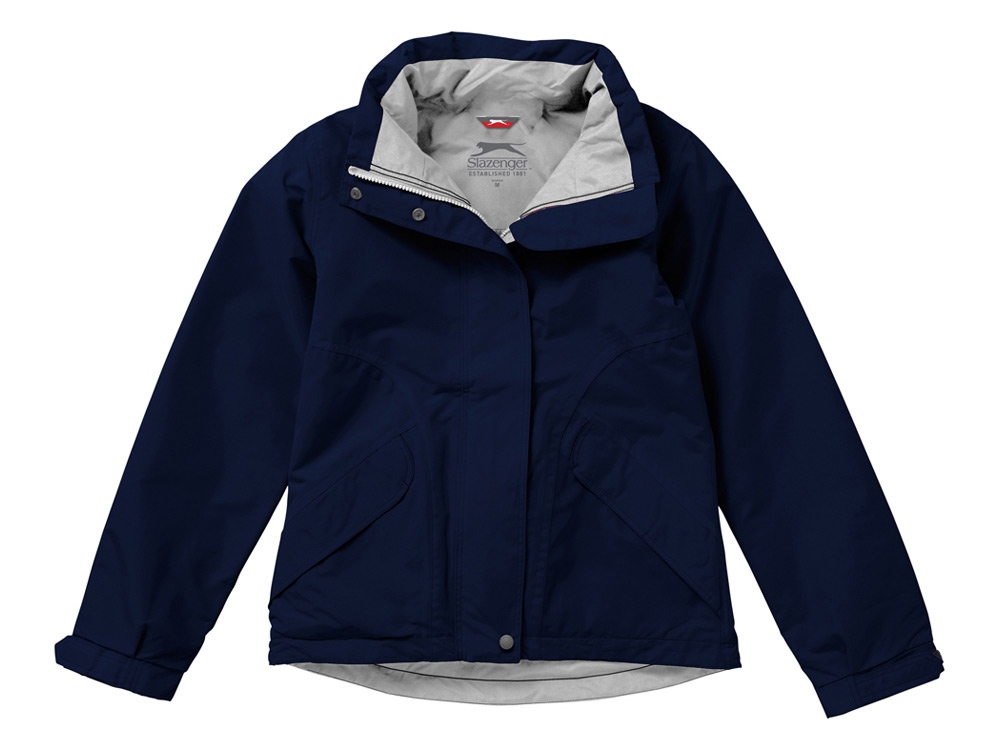 Женская куртка Slice. Стандартный покрой. Водонепроницаемая ткань. Капюшон на завязках, прячется в воротник. Передние карманы на молнии под клапаном. Регулируемые манжеты на липучках. Регулируемый низ на шнурках со стопперами. Полностью проклеенные швы. Петелька для застежки. Принт Slazenger сзади. Микроволокно добби с велюровой отделкой из 100% полиэстера с ПУ покрытием. Сетчатая подкладка из 100% полиэстера. Термотрансфер (1 цвет (цветные изделия)) на данный товар осуществляется бесплатно. Оплачивается только настройка оборудования в размере 8700 рублей на весь тираж.