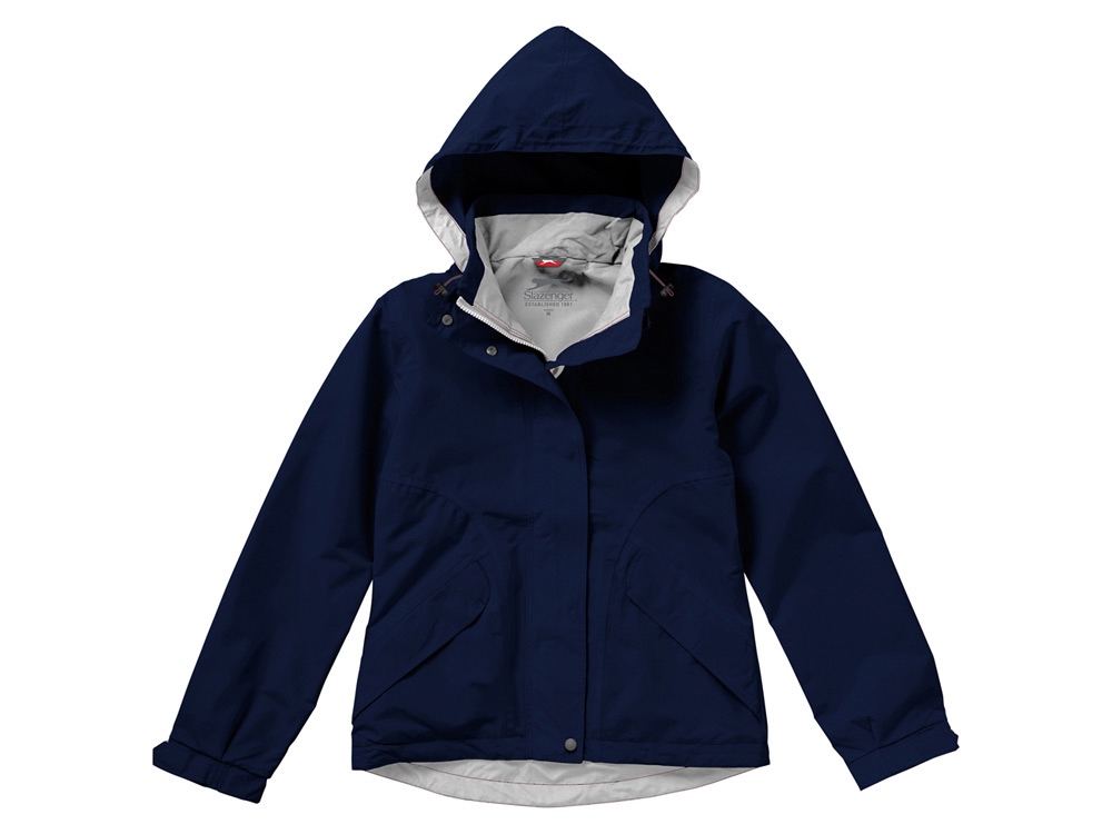 Женская куртка Slice. Стандартный покрой. Водонепроницаемая ткань. Капюшон на завязках, прячется в воротник. Передние карманы на молнии под клапаном. Регулируемые манжеты на липучках. Регулируемый низ на шнурках со стопперами. Полностью проклеенные швы. Петелька для застежки. Принт Slazenger сзади. Микроволокно добби с велюровой отделкой из 100% полиэстера с ПУ покрытием. Сетчатая подкладка из 100% полиэстера. Термотрансфер (1 цвет (цветные изделия)) на данный товар осуществляется бесплатно. Оплачивается только настройка оборудования в размере 8700 рублей на весь тираж.