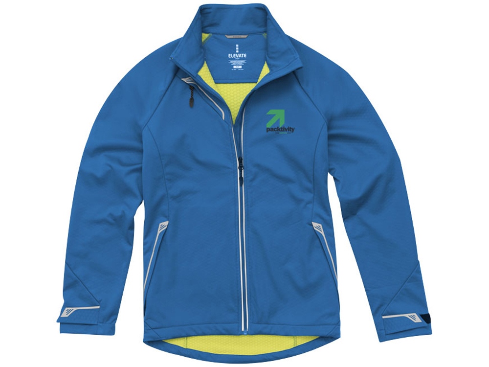 Женская куртка софтшел Kaputar. Универсальный покрой. Детали трансфера. Обратная молния по центру спереди с серебряной отражающей лентой. Эластичные завязки со стопперами внизу. Внутреннее отверстие для медиапроводов. Регулируемые ламинированные застежки на манжетах на липучке. Эргономичные рукава. Скрытый карман вверху на обратной молнии. Водонепроницаемый 8000 мм, дышащий 500 г/м2. Двухластичный трикотаж из 100% полиэстера, склеенного со 100% полиэстеровым рельефным флисом с водонепроницаемой дышащей мембраной и водоотталкивающей отделкой. 240 г/м². Термотрансфер (1 цвет (цветные изделия)) на данный товар осуществляется бесплатно. Оплачивается только настройка оборудования в размере 8700 рублей на весь тираж.