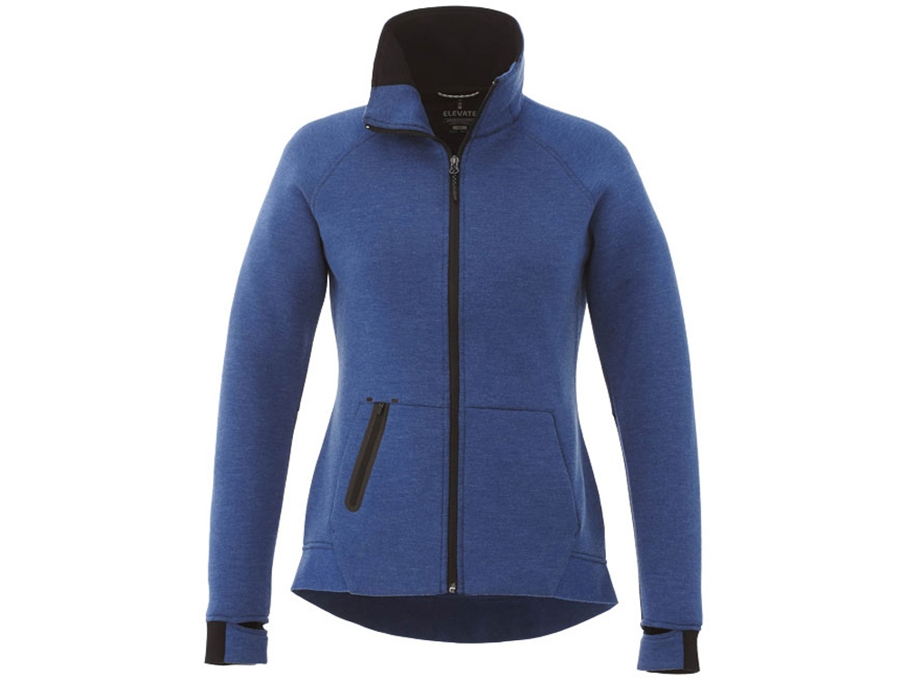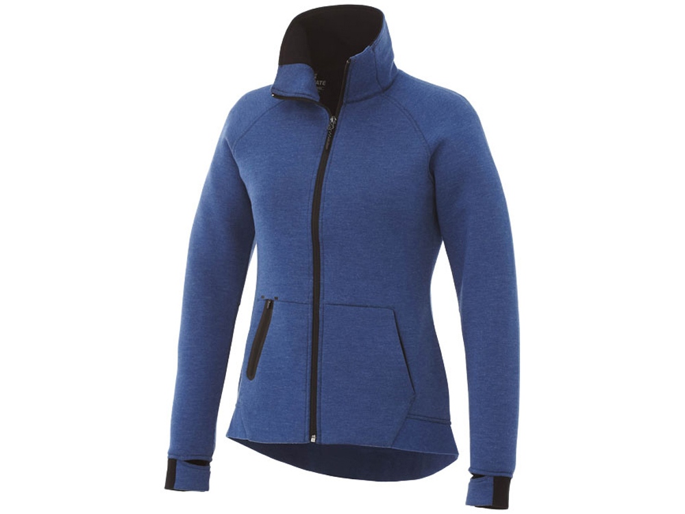 Трикотажная куртка Kariba женская. Универсальный покрой. Контрастный цвет внутри воротника. Контрастный цвет внутри воротника. Эргономичные рукава. Отверстие для большого пальца. Отверстие для большого пальца. Молния легкого скольжения. Внутреннее отверстие для медиапроводов. Эргономичные рукава. Приталенная модель и формовые швы (женская модель). Трикотаж джерси 80% хлопок и 20% полиэстер, спаян с трикотажной тканью 93% полиэстер и 7% эластан. 480 г/м².