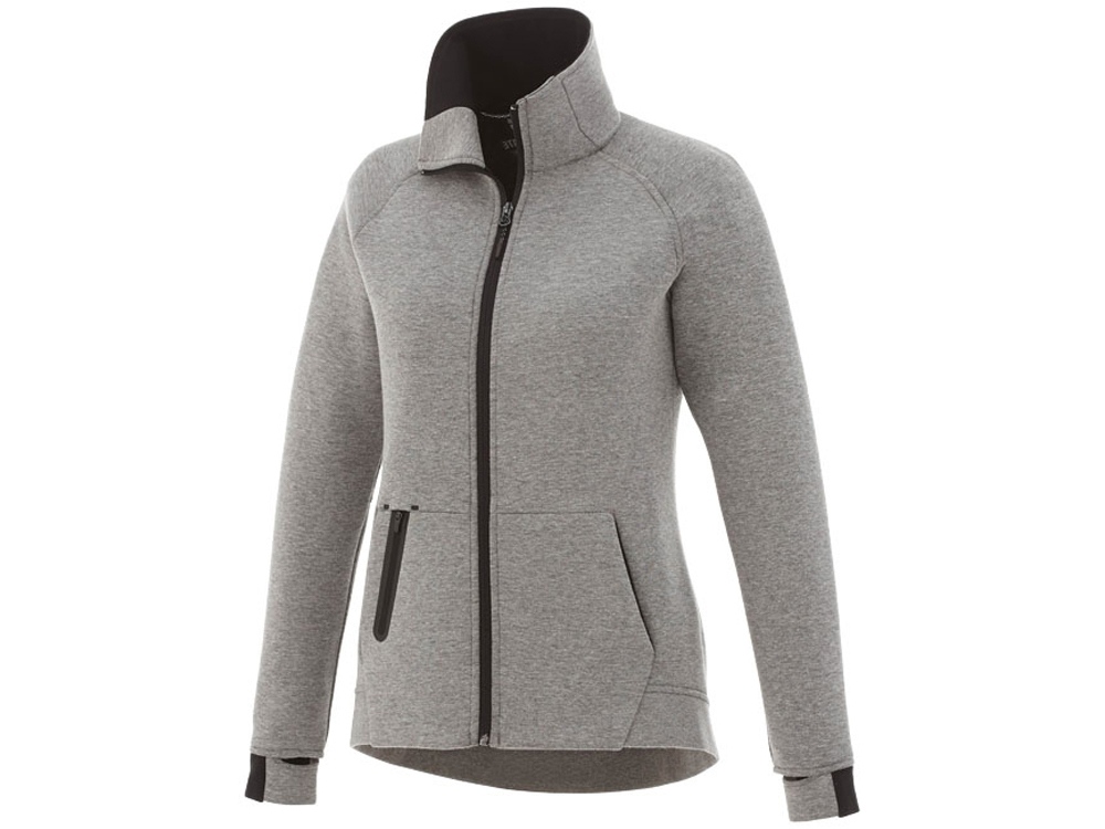 Трикотажная куртка Kariba женская. Универсальный покрой. Контрастный цвет внутри воротника. Контрастный цвет внутри воротника. Эргономичные рукава. Отверстие для большого пальца. Отверстие для большого пальца. Молния легкого скольжения. Внутреннее отверстие для медиапроводов. Эргономичные рукава. Приталенная модель и формовые швы (женская модель). Трикотаж джерси 80% хлопок и 20% полиэстер, спаян с трикотажной тканью 93% полиэстер и 7% эластан. 480 г/м².