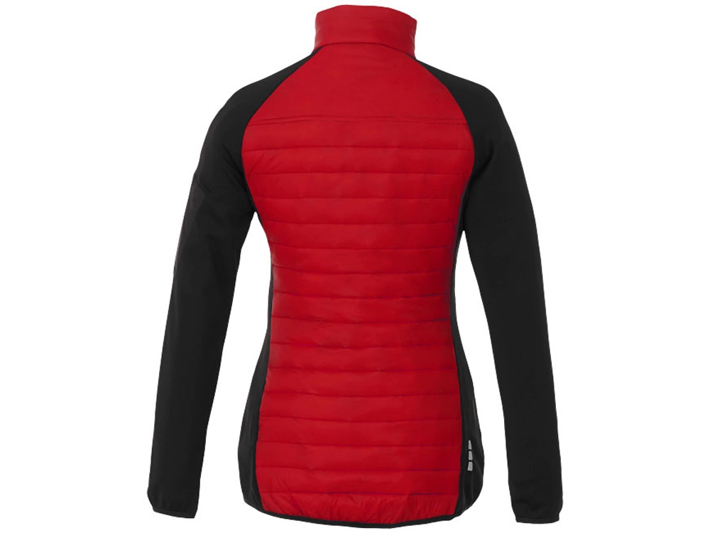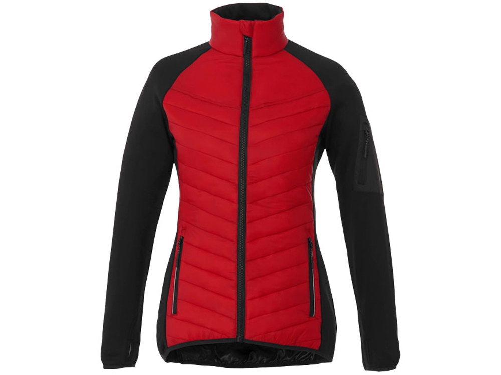 Женская утепленная куртка Banff. Внутренний противоветровой клапан и защита подбородка. Внутренний выход для медиапроводов. Удлиненная задняя часть изделия. Швы моделирующие фигуру и приталенный крой (женская модель).Манжеты-резинки контрастного цвета. Отделка контрастной тканью. Молния с контрастной лентой. Молния легкого скольжения. Петелька-вешалка. Комфортный ярлык-трансфер на изделии. 100% нейлоновая тканая матовая отделка 380T, водоотталкивающая и пухонепроницаемая ткань. Контрастная ткань: 94% полиэстер, 6% эластан с водоотталкивающей поверхностью. 38 г/м².