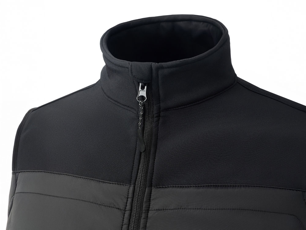 - гибридная конструкция из 2 видов материалов – софтшелл гарантирует ветронепроницаемость и легкость, а стеганные вставки добавляют утепления.