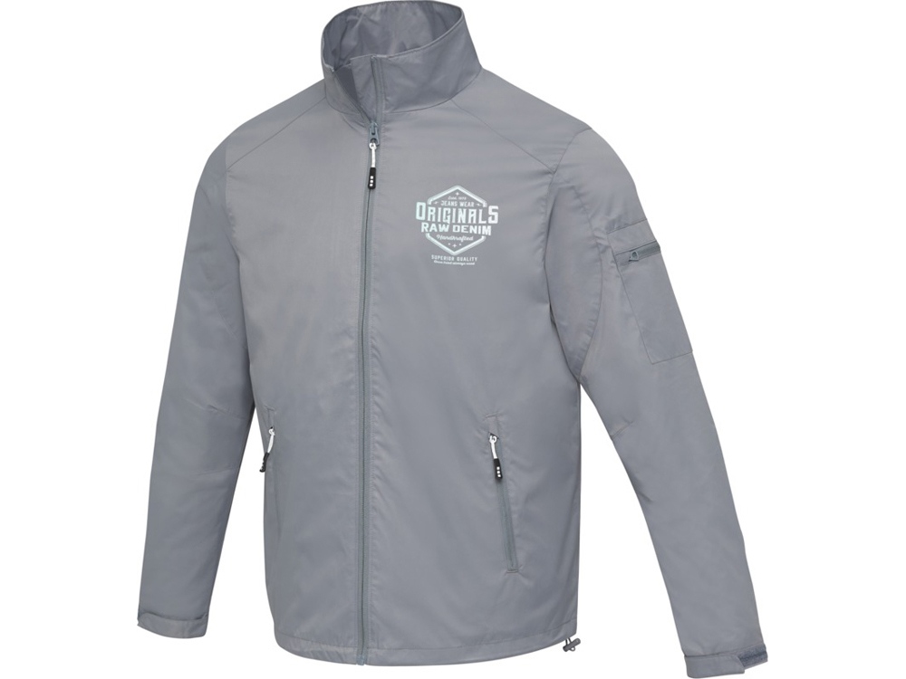 Мужская легкая куртка Palo. Водонепроницаемость 2000 мм и пропускание воздуха 2000 г/м². Карман на рукаве. Внутренний карман. Передние карманы с застежкой-молнией. Вентиляционные отверстия с матовыми люверсами возле подмышек. Регулируемые манжеты с застежкой на липучке. Регулируемый шнурок с зажимом внизу подола. Обратная застежка-молния по центру. Бегунки застежки-молнии с простой фиксацией. Резиновая петля для подвешивания с символикой. Главный лейбл нанесен методом термоприклеивания, удобным для размещения рисунков на ткани. 320T nylon taslon twill 100% Нейлон, 133 g/m2, Lining, 210T polyester taffeta 100% Полиэстер, 60 g/m2.