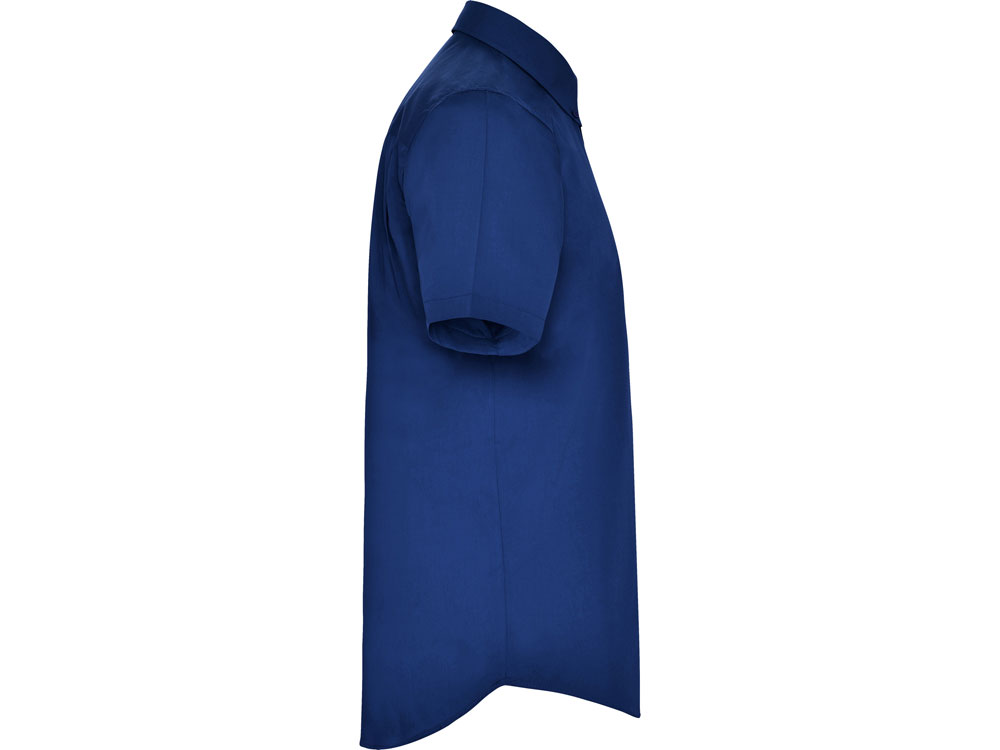 Рубашка мужская с коротким рукавом на семи пуговицах. Накладной карман на груди слева, закругленный низ изделия. Уголки воротника продублированы пуговицами.