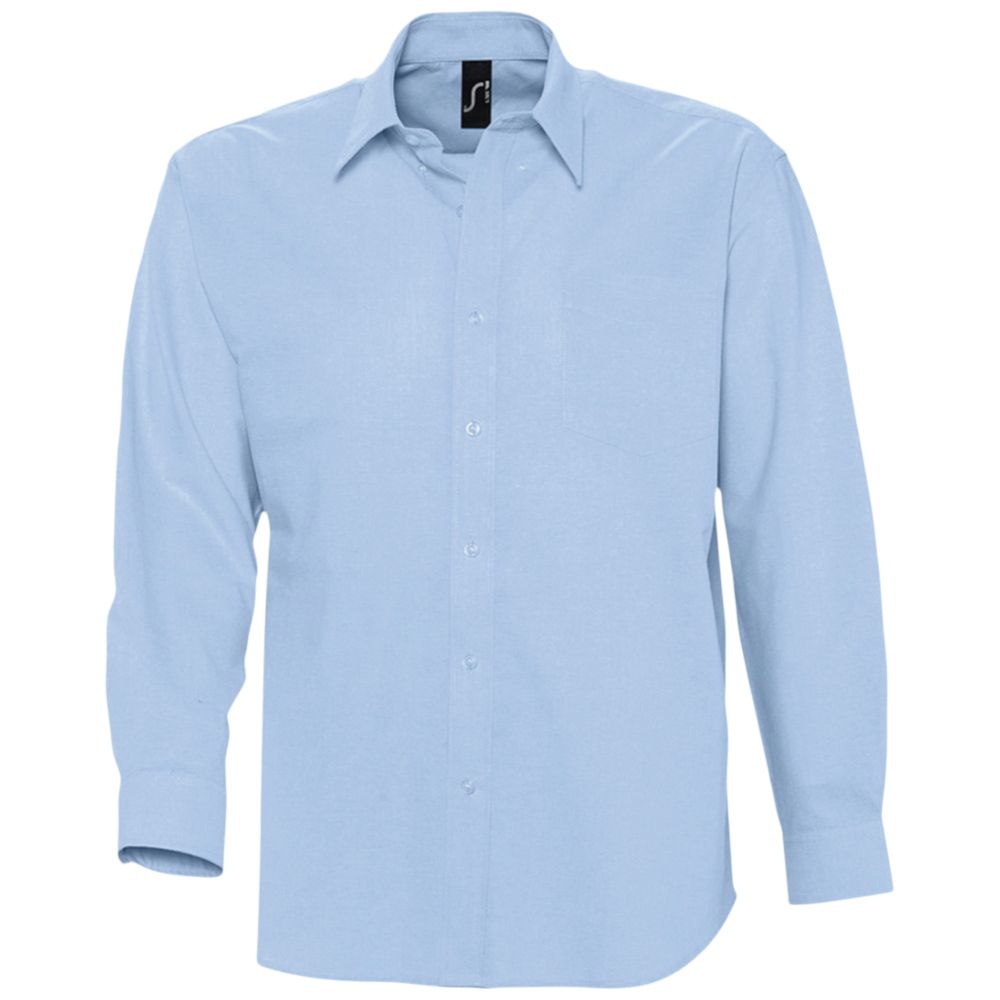 Рубашка из ткани «Оксфорд» с нагрудным карманом слева. На спинке две симметричные складки, воротник на двух пуговицах, регулируемые манжеты, планка с семью пуговицами в тон.