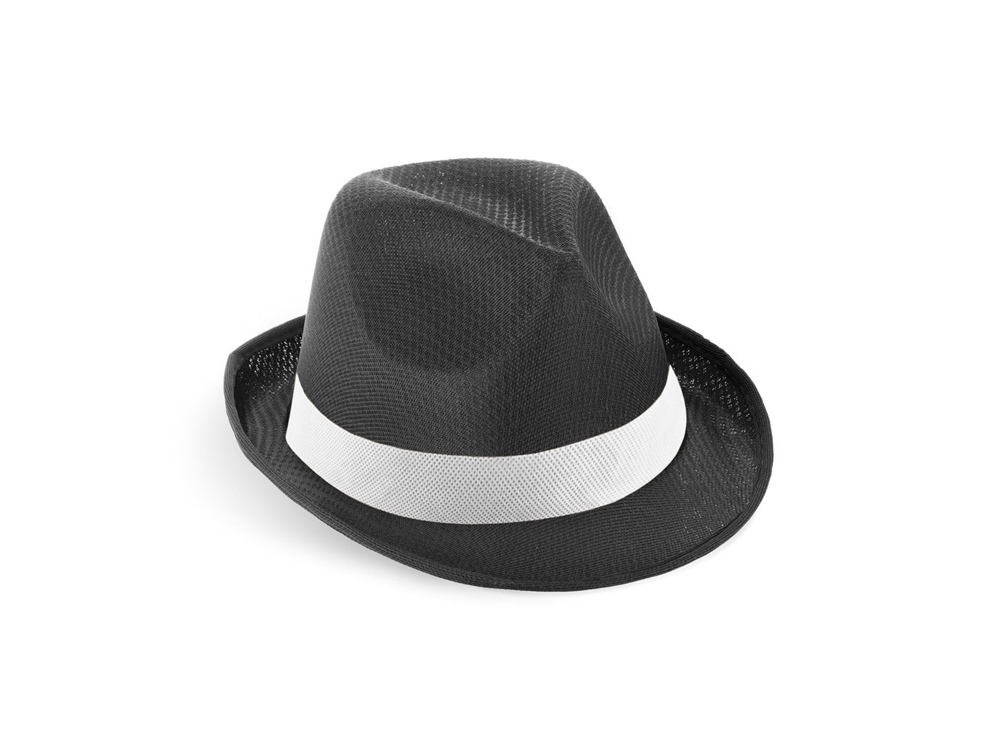 Шляпа из РР (доступна в нескольких цветах) с белой лентой из полиэстера. Для заказов без нанесения лента поставляется отдельно от шляпы. Размер: 580 мм